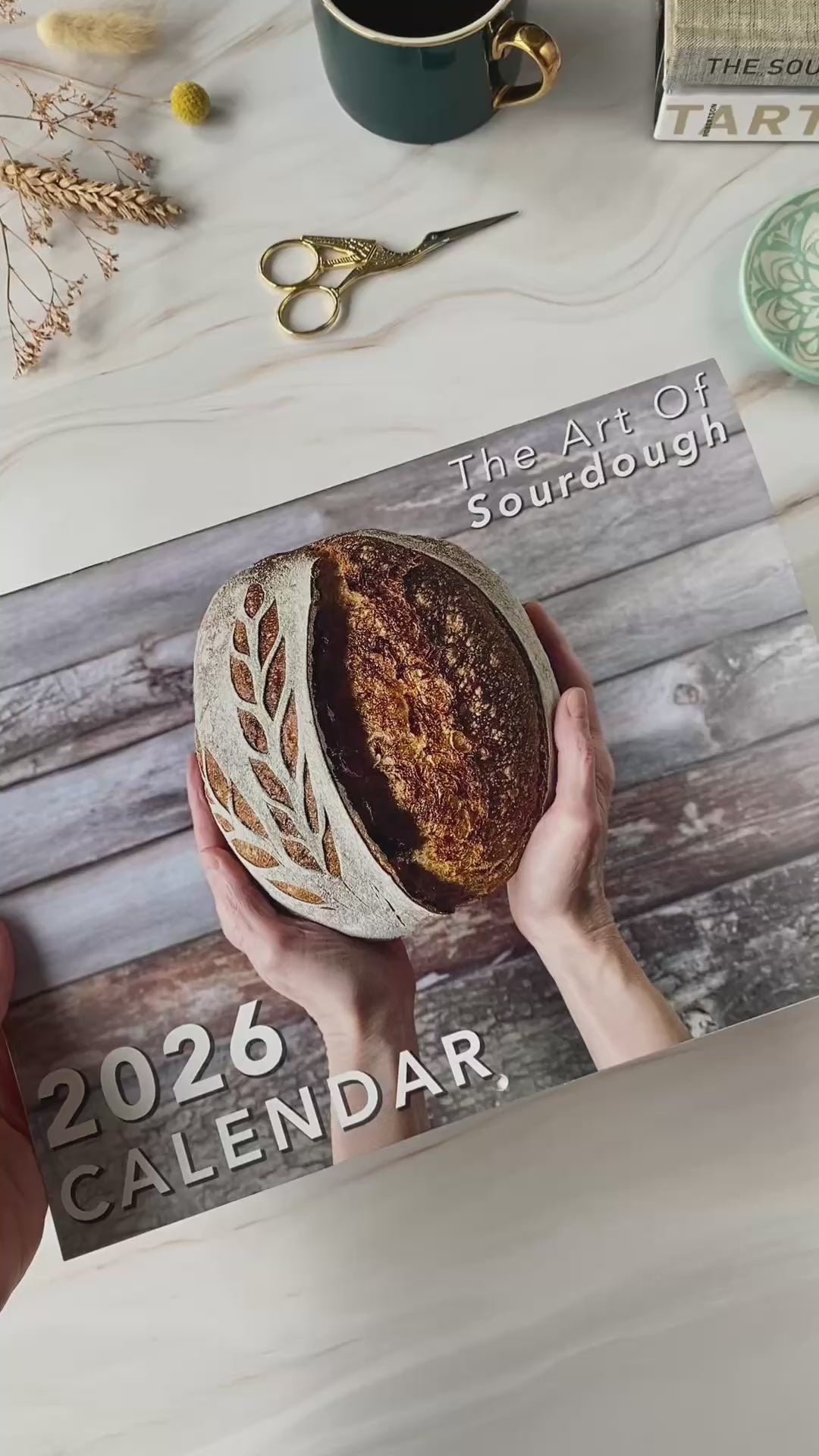 This unique bread art wall calendar will bring joy to your kitchen with high quality photos and pro sourdough tips for every month!